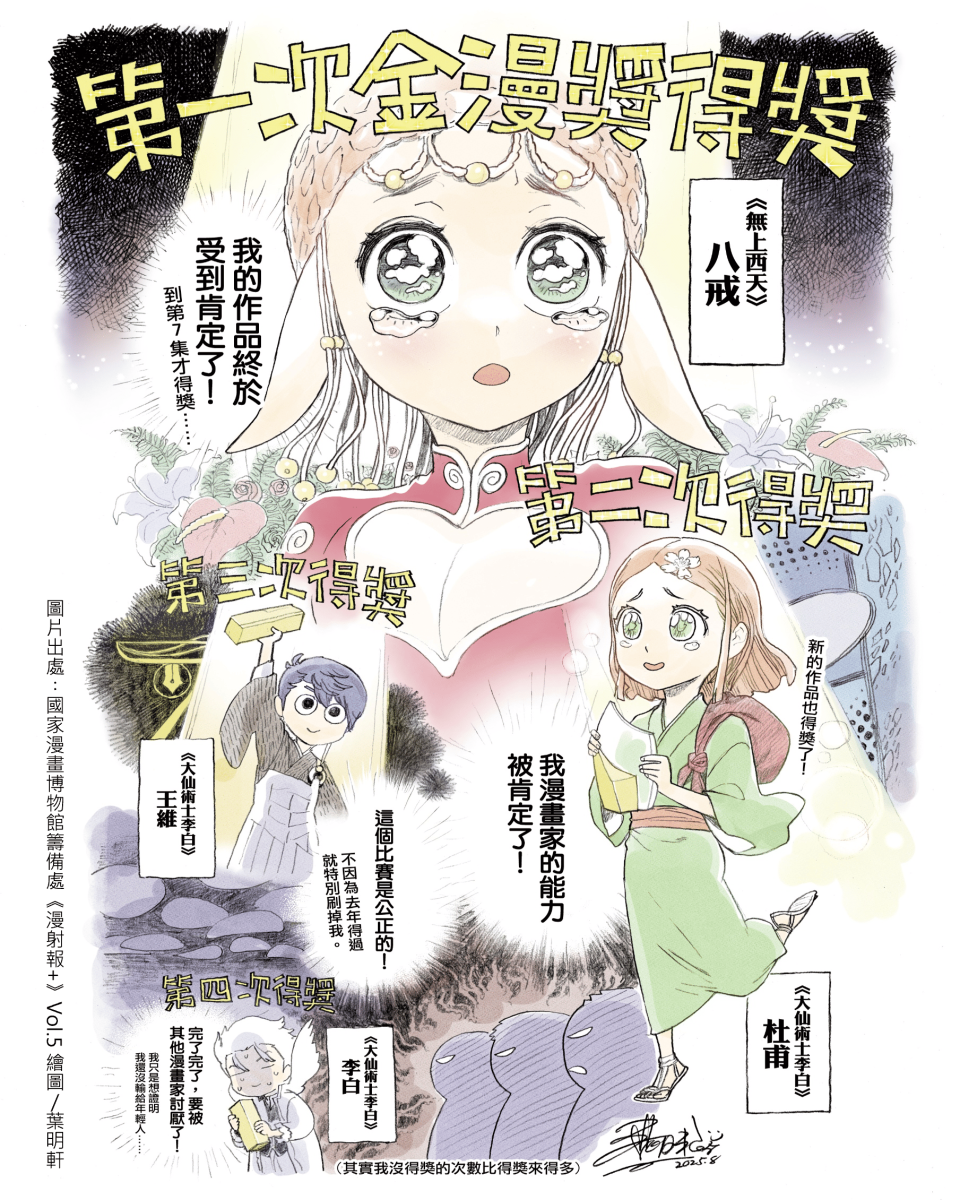 2015、2016、2019年以《大仙術士 李白》三度獲得金漫獎肯定。