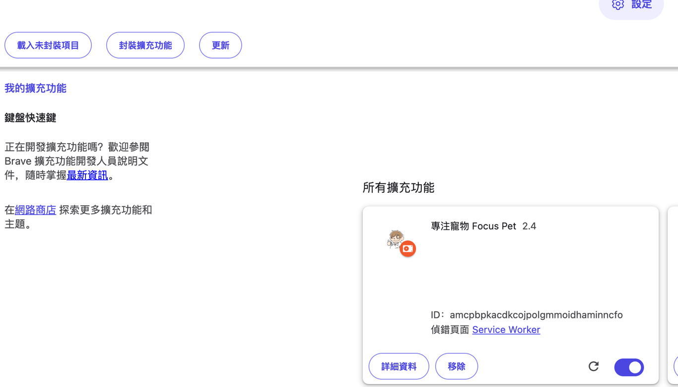 釘選它:點擊 Chrome 右上角的拼圖圖示,把你的「寵物番茄鐘」釘選出來。