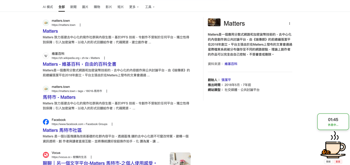 休息會長這樣:他會自己跳出個內建的咖啡杯。