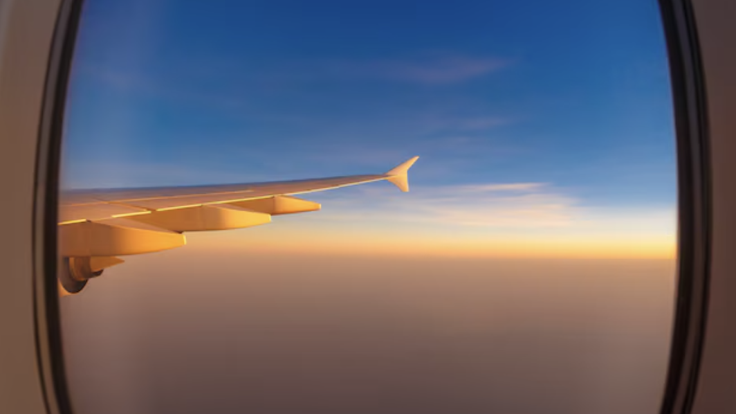 跨過換日線,機翼與晨曦平行;耀眼的加州陽光穿透雲層,照得我瞇上眼睛。