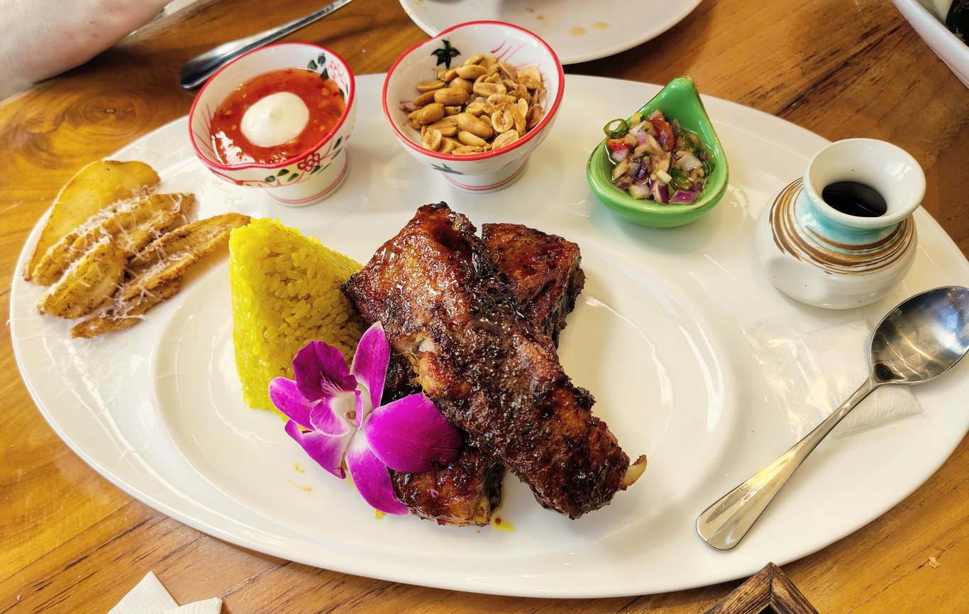 我去美式餐廳最愛點豬肋排。這家的豬肋排走的是峇里島風,佐料沾醬都是熱帶南洋風味,除了肋排本身的美味之外,這道菜吃的是一個異國熱帶風情的調味。
