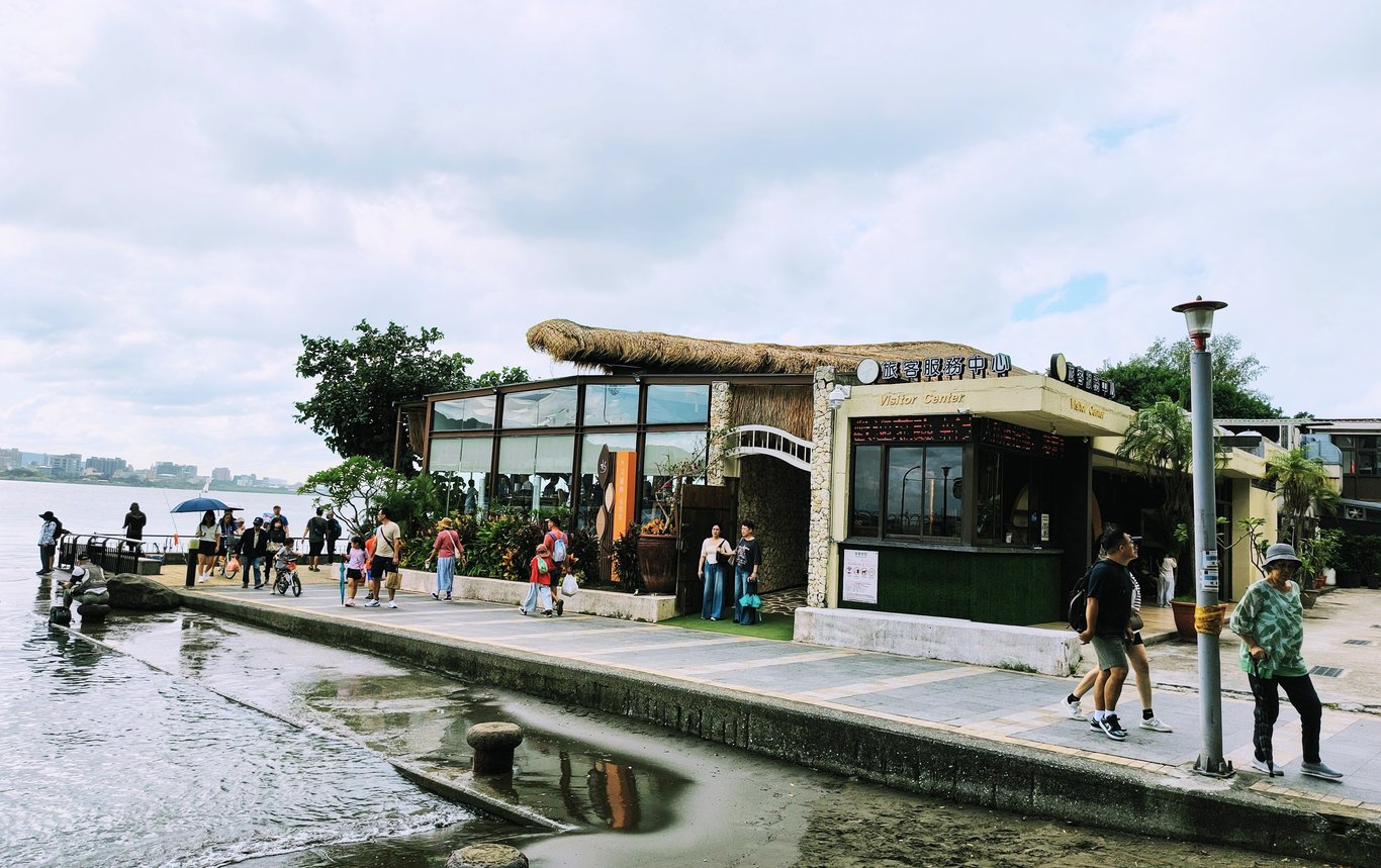 週日 (11/9) check out 之後,先不急著回家,我們把車停在淡水捷運站,去老街走走,趁著天氣好,順便拉著媽媽運動一下。因為烈日當空,媽媽也容易累,我們走到 WaterFront-水灣BALI 景觀餐廳 榕堤店 後進去坐坐休息,順便吃午餐。因為位置絕佳,生意又好。店家是走套餐式的點餐模式。