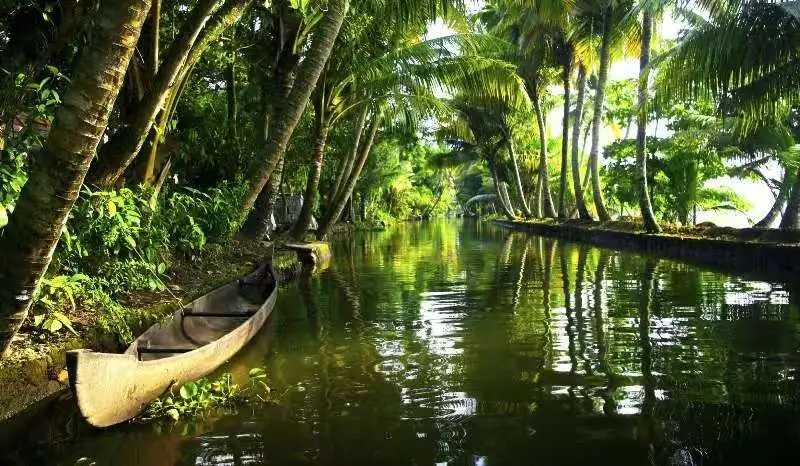 从北方的宗教圣城走到南方的热带绿洲,喀拉拉邦的回水区(Backwaters)呈现出另一番景象。这里河道纵横,椰林密布,被称为 “上帝之乡”。