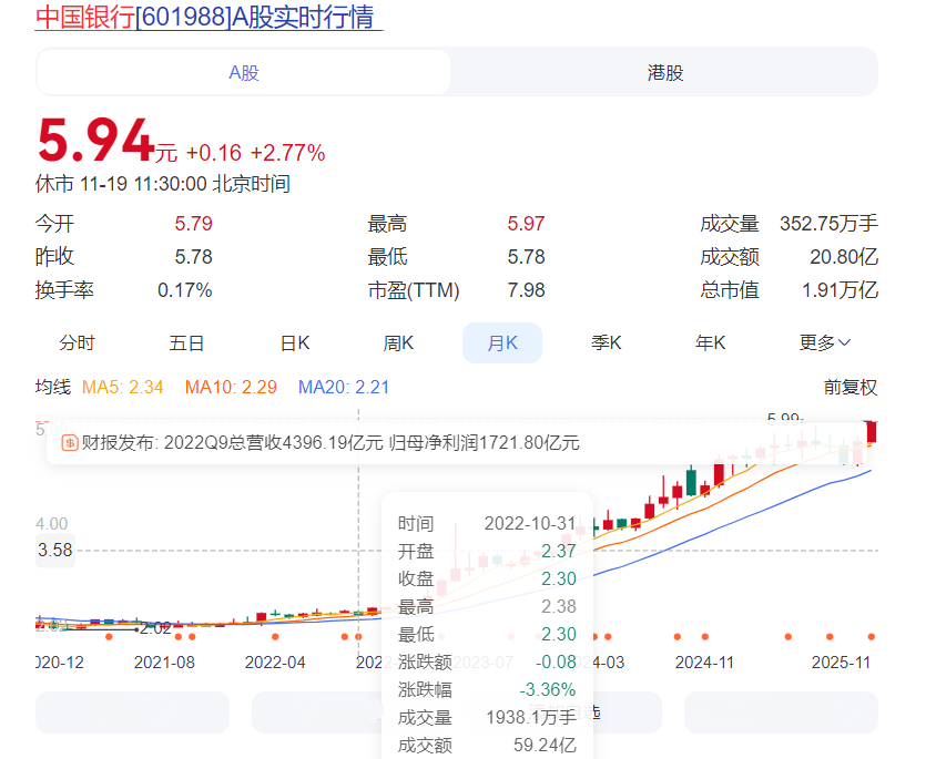 就拿中国银行举例吧,如果你2022年10月底买,到今年11月左右,扣完税,一股可能才赚3块钱左右,1万股,3年才赚3万,这点收益哪能跟ST公司比。