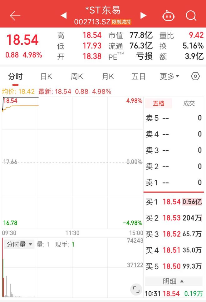 但是风浪越大鱼越贵,虽然距离退市可能仅剩一个半月,资金方却疯狂拉板,誓要让涨停再飞一会,毕竟故事是讲给散户听的,拉涨停板是给自己赚的。
