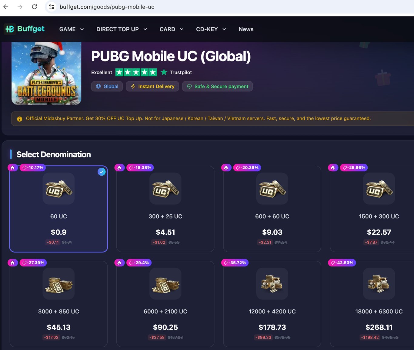 Midasbuy Hidden Bonus: Enter code BUFFGET2025 at checkout for 10% extra UC.