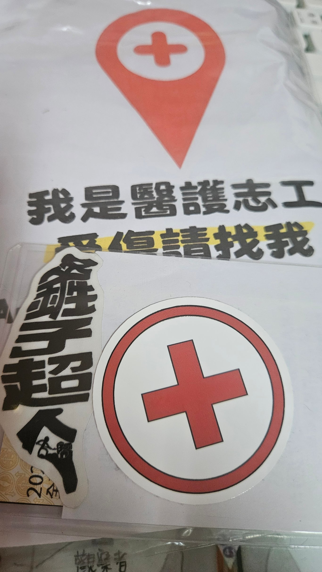 一開始本來想說去玩泥巴時要順便帶上醫療包,如果有人有需要或許可以幫忙消毒包紮什麼的,所以在出發前除了加入現場救災群組,也加入了醫療群組。那幾日觀察下來,發現比起玩泥巴,連假期間現場可能更需要多一些醫護背景或EMT等證照的志工,所以那天一直到最後,我連鏟子都沒摸到,更別說鏟到一咪咪土或玩到一坨泥巴了,但休息時還是收到『鏟子超人』的臺灣造型貼紙,我真的覺得有點歹勢。