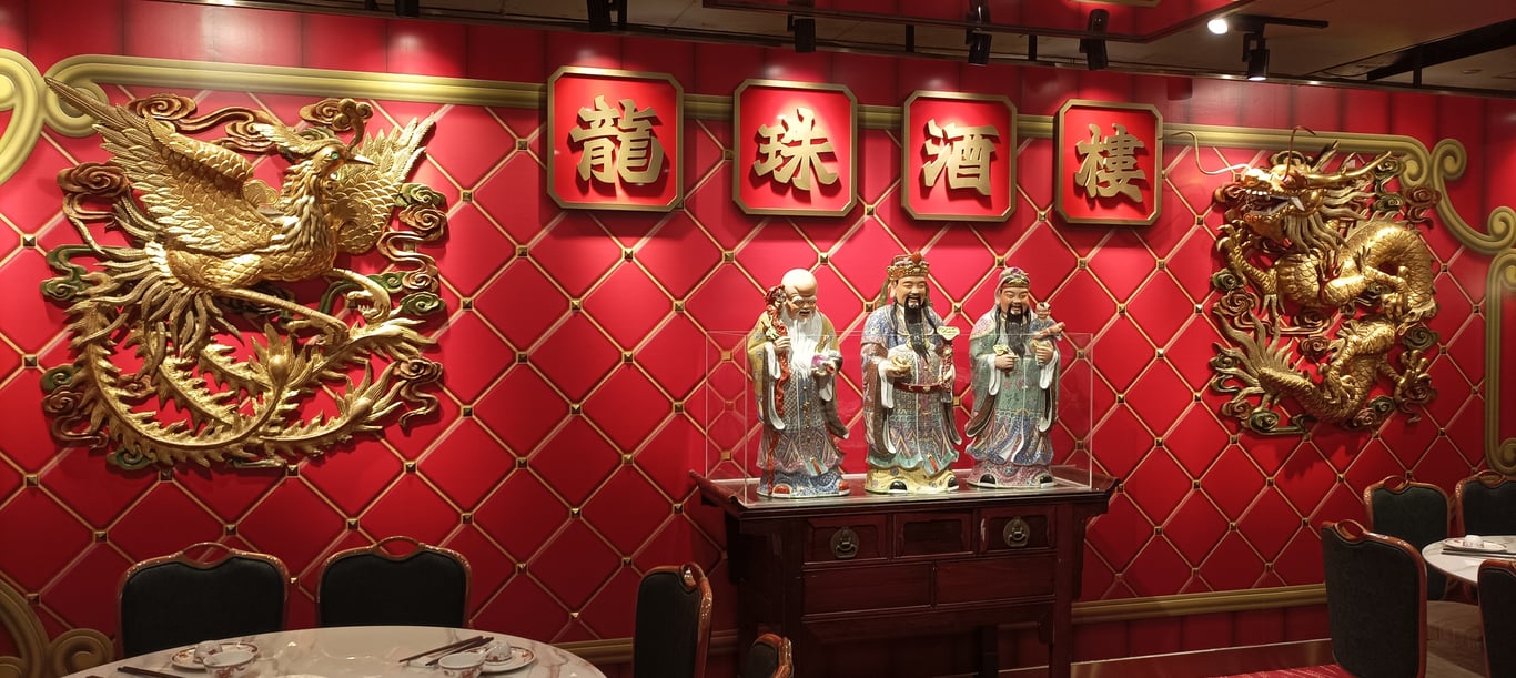 與「襟江酒家」一樣,「龍珠酒樓」也佈置了一個龍鳳大堂,增添懷舊的風味,就連部份菜單的價錢也同樣是用復古的寫法,只是今天還有多少人能看得懂那種寫法呢?