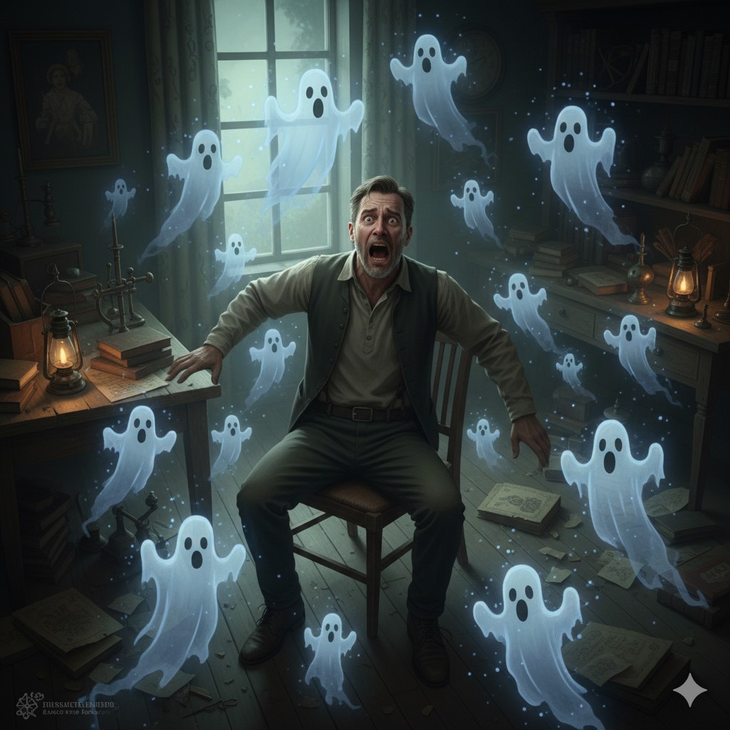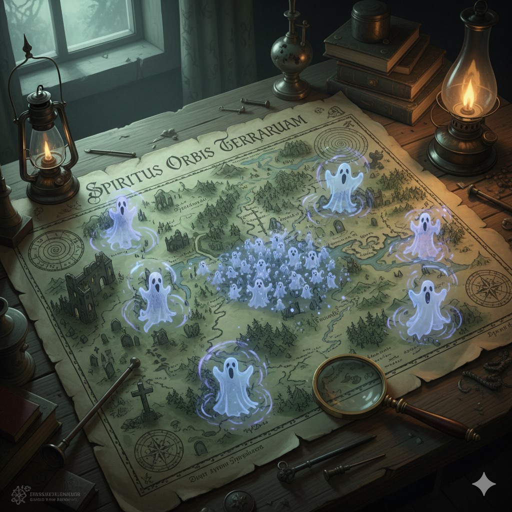 男人想尖叫,又像被人掐住似的沒有發出聲音,因為他發現,地圖上充滿了象徵鬼魂的點點,而那些點點,都聚集在自己身邊。