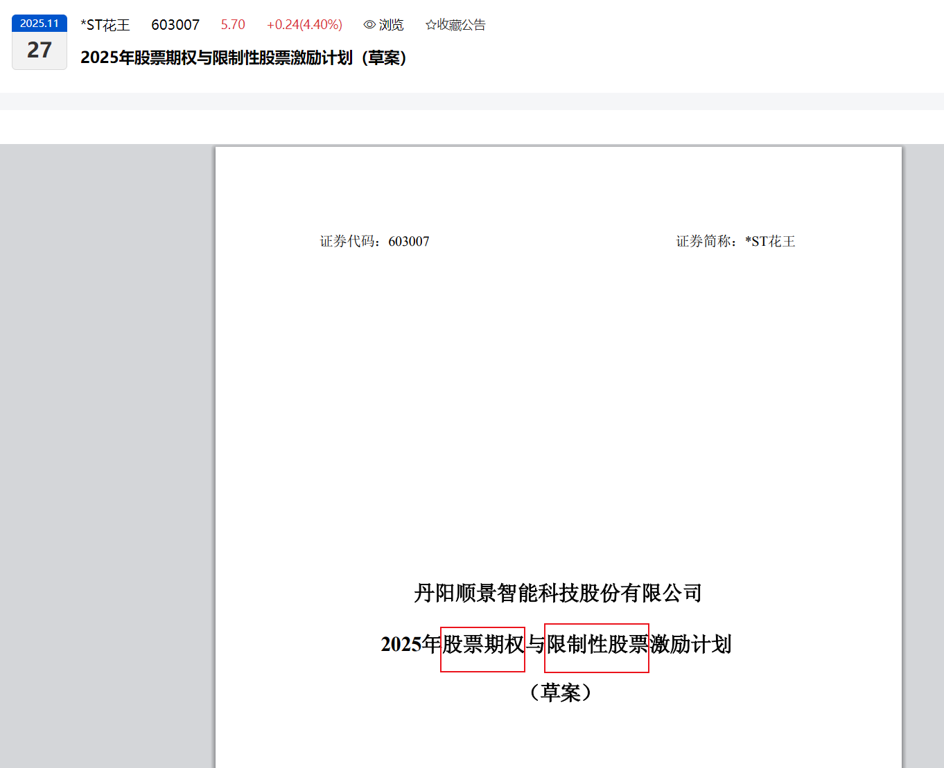 这种就是真缺钱了,急需通过股权激励向员工融资,所以*ST花王发布的《2025年股票期权与限制性股票激励计划(草案)》中,激励计划包括了股票期权和限制性股票两个部分。