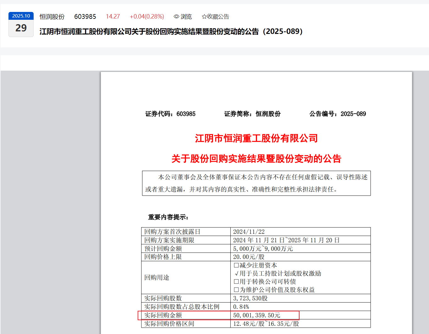 恒润股份:拟5000万元-9000万元回购股份 用于股权激励或员工持股计划——中国证券报