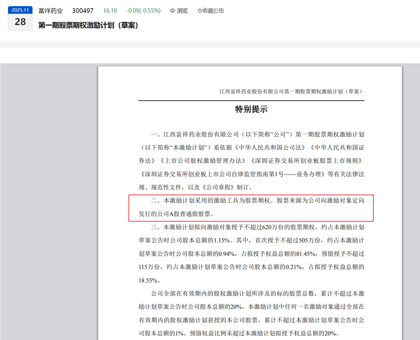 以富祥药业为例,在《第一期股票期权激励计划(草案)》中说得很清楚,股票来源为“公司向激励对象定向发行的公司A股普通股股票”。这意味着,员工掏钱认购,钱直接进入公司账户。等锁定期结束、业绩达标,员工才能在二级市场卖出变现。
