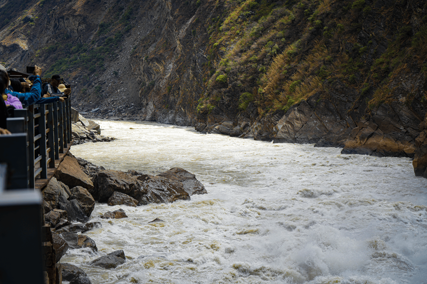 導遊說有「天界神川」的說法,前者指香格里拉,後者指虎跳峽。虎跳峽是長江上游金沙江段最狹窄險峻的一段,相傳說峽谷中間有一塊大石,一隻猛虎從一邊的玉龍雪山跳到另一邊的哈巴雪山,中途踏了一下這塊大石,因而取名。目前在進行的「滇中引水工程」預計2026年10月竣工,旨在從金沙江幹流引水至滇中地區,以緩解滇中地區的缺水問題。導遊的老家正在受影響範圍,因而被迫搬遷。