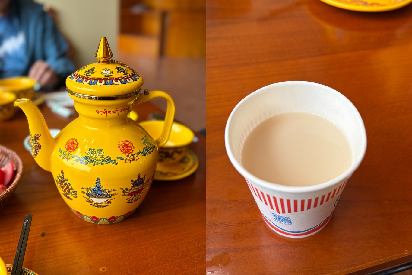 除了香格里拉,我們住的都是規模不大的民宿。早餐多會來一碗辣碎肉米粉、白煮雞蛋和玉米段、榨菜等等。如果抵不了辣,大可請掌廚的姨姨煮一碗大米粥,都簡單飽肚。雲南人都愛吃辣,尤其是五至八月。導遊和我們一起吃飯,最愛吃辣炒土豆(薯仔)條,還有飲一杯酥油茶驅寒保暖。導遊說,家裏會自製酥油。每年年初,他們家會殺四頭豬,用其中3隻製作臘肉,這也是當地的常食之物。