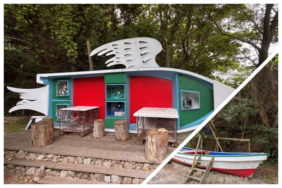 在岛上会看到好几个和船有关的作品。因为以前的小豆岛有不少人从事渔业,但现在因为老龄化渔民变得寥寥无几,于是艺术家就通过购买废弃的船只制作了作品。我个人感觉是非常小清新的。小船坐落的地方很安静很角落,是个适合坐着发呆的休息区。