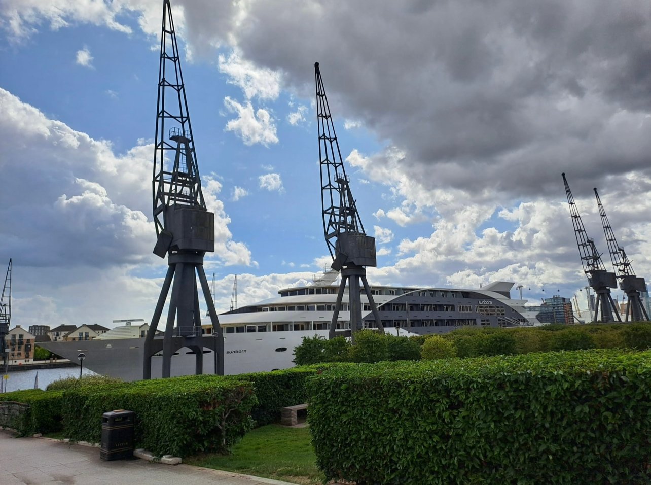 政府希望籍著Canary Wharf 的影響力, 帶契整個船塢地區(Dockland) 的經濟發展。 當年被德軍炸得支離破碎就是今天的Royal Dock, 假如Virginia Woolf 再遊倫敦東,她未必全然認不出此地方,只是既陌生又熟悉。因為Royal Dock 依然保存當年14個貨物起重機,現為二級保護文物,而內塢的河水由當年一片泥濘到現在的清澈見底,週未常常有大學划艇隊在練習。 就算不划艇,很多英國人也會租架Go Boat 由Canary Wharf 或Royal Dock 起遊遍倫敦的河道。