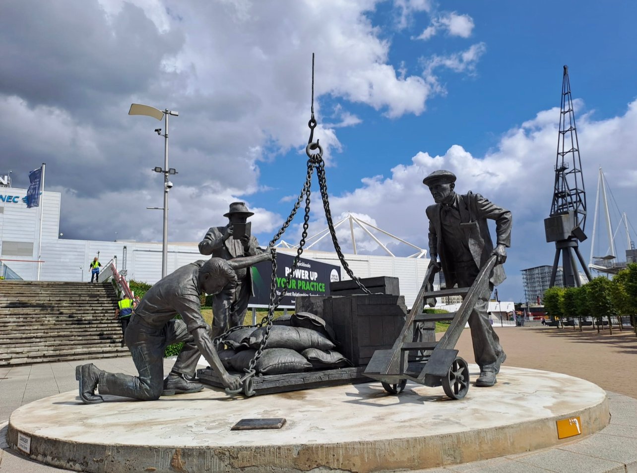 Royal Dock的空曠地方屹立一個雕像,此雕像極度細緻,把當年海運上貨落貨的情況刻劃下來,我細看此雕像其中一箱貨物就標明Hong Kong, 也代表當年英國有很多業務由香港輸入和運出。Royal Dock 的盡頭是University of East London, 大學和Royal Dock 之間有個位置就是中資ABP的爛尾項目。樓宇起好了外觀後就擱下,大量單位並未完成,成了石屎荒漠,倫敦鬼城。