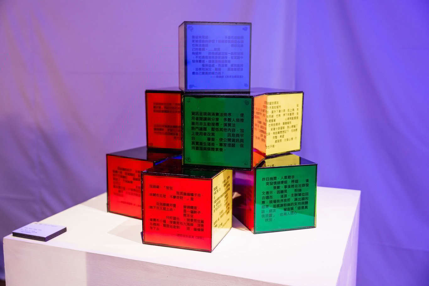 同學也同步依照展覽分工分成不同組別,包含實體展覽、文字、宣傳...等等,也運用 Discord 作為主要溝通工具。本次展覽特別與 c2x3 合作,呈現虛擬展場與 NFT 作品。課程中期階段,師生團隊不斷迭代與優化作品,在查看實際展覽場地後,進一步使實現構想更具可行性。