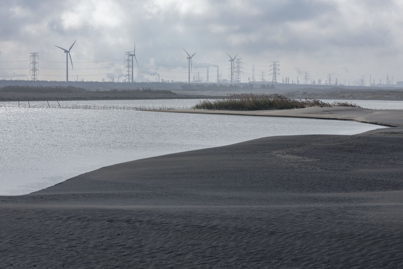 在走往溪床的小路上,從堤防、潮流、風向,講到南北岸的植物。話天、話地、話鰻苗、話文蛤、話赤嘴、話六輕、話電廠,就是不說自己的照片。最多就是指著三合院牆上掛的照片簡單說了一句:「你們先看,有問題再問我……」同為理工男出身,我很快就瞭解到阿唐的話多不是愛說教,而是對故土的愛。而他的地景影像看似沉靜,但卻是最多話的。