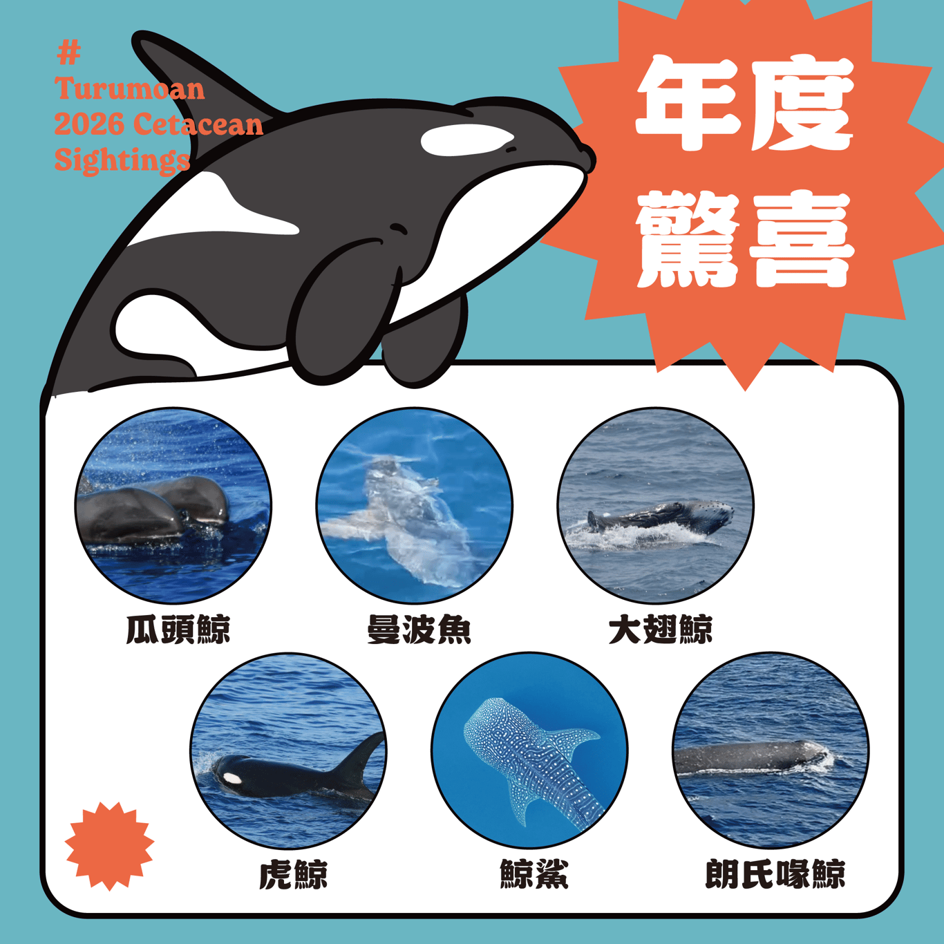 2025 年,我們一共記錄到 15 種鯨豚,