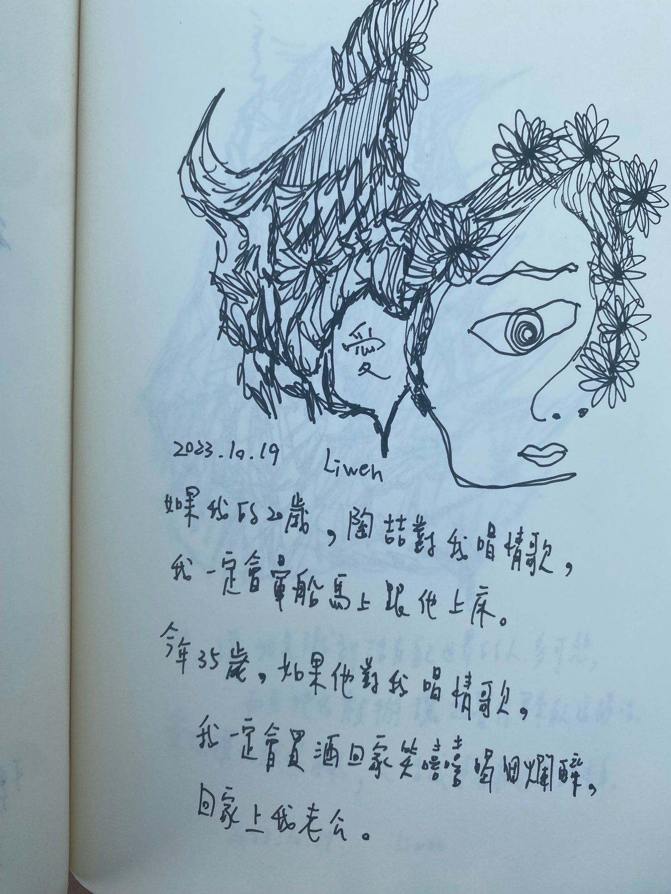 看了一些北京上海的年輕朋友的照片跟文字,看著他們的生活還有放蕩,我會懷疑他們住的中國是那一個于朦朧住的中國嗎?是那個鐵鏈女被囚禁的中國嗎?他們活得自由染著一頭紅髮,穿著酷炫的衣服還有一身傲骨,我常在想是那個天安門用戰車碾死人又不讓說的中國嗎?