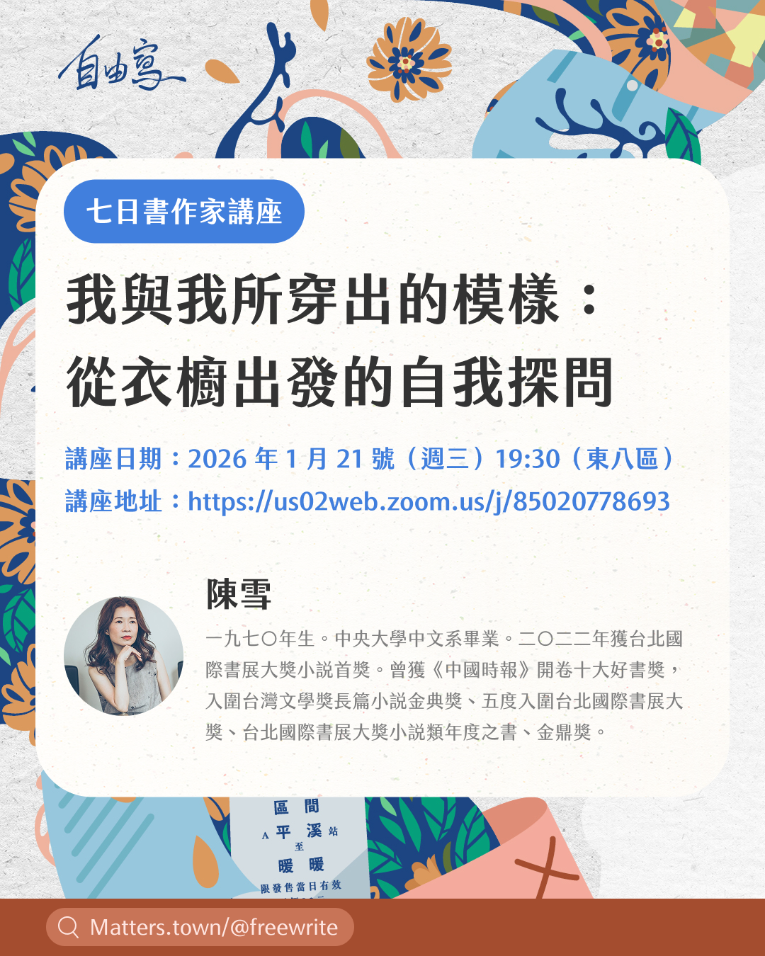 線上講座|陳雪:我與我所穿出的模樣:一場從衣櫥出發的自我探問