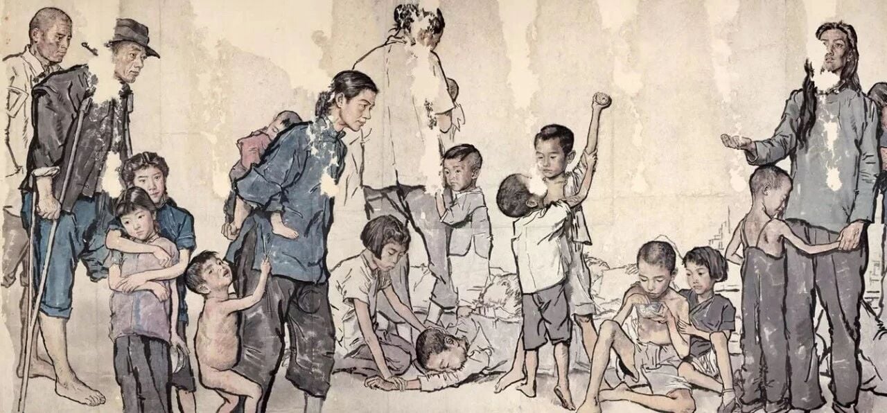 目前藏在中國美術館裡,也表現了當年一九四幾年的時候中國的苦難百姓,我也用流民圖的概念,毛澤東在1917年看到了中國社會的殘酷,流民圖結束,出現了片名《出發》,片子就結束了,但是流民圖之前,是有過一條江,到對面救一個人到地面,但是對面是戰爭的場面,是一個人間的煉獄。