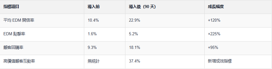 該品牌導入行銷自動化平台後,逐步實施三項策略,藉以提升整體顧客經營成效: