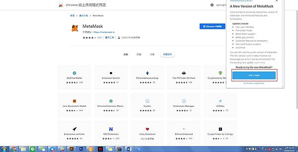 step1.打開google chrome點選右手邊擴充功能,搜尋Metamask