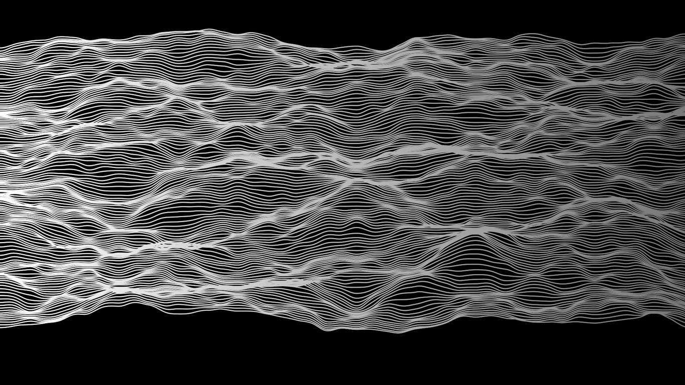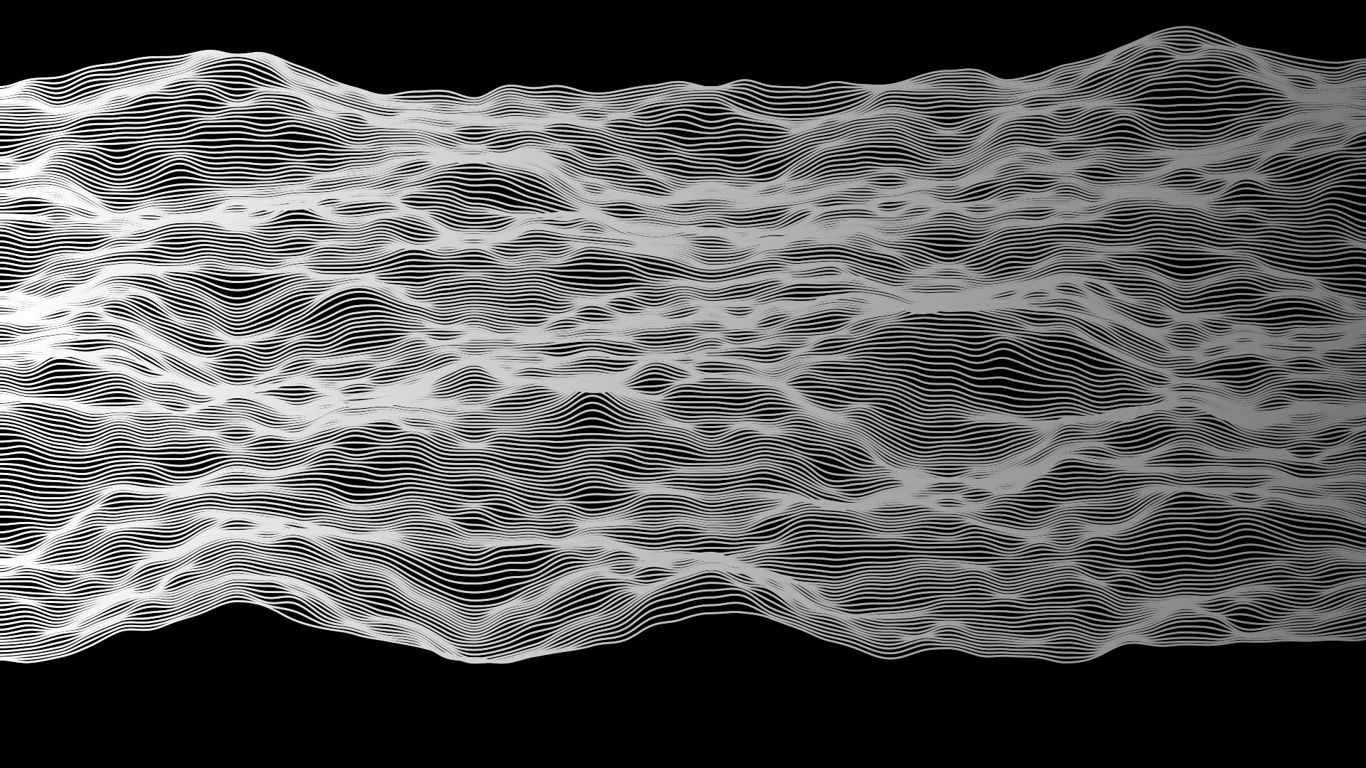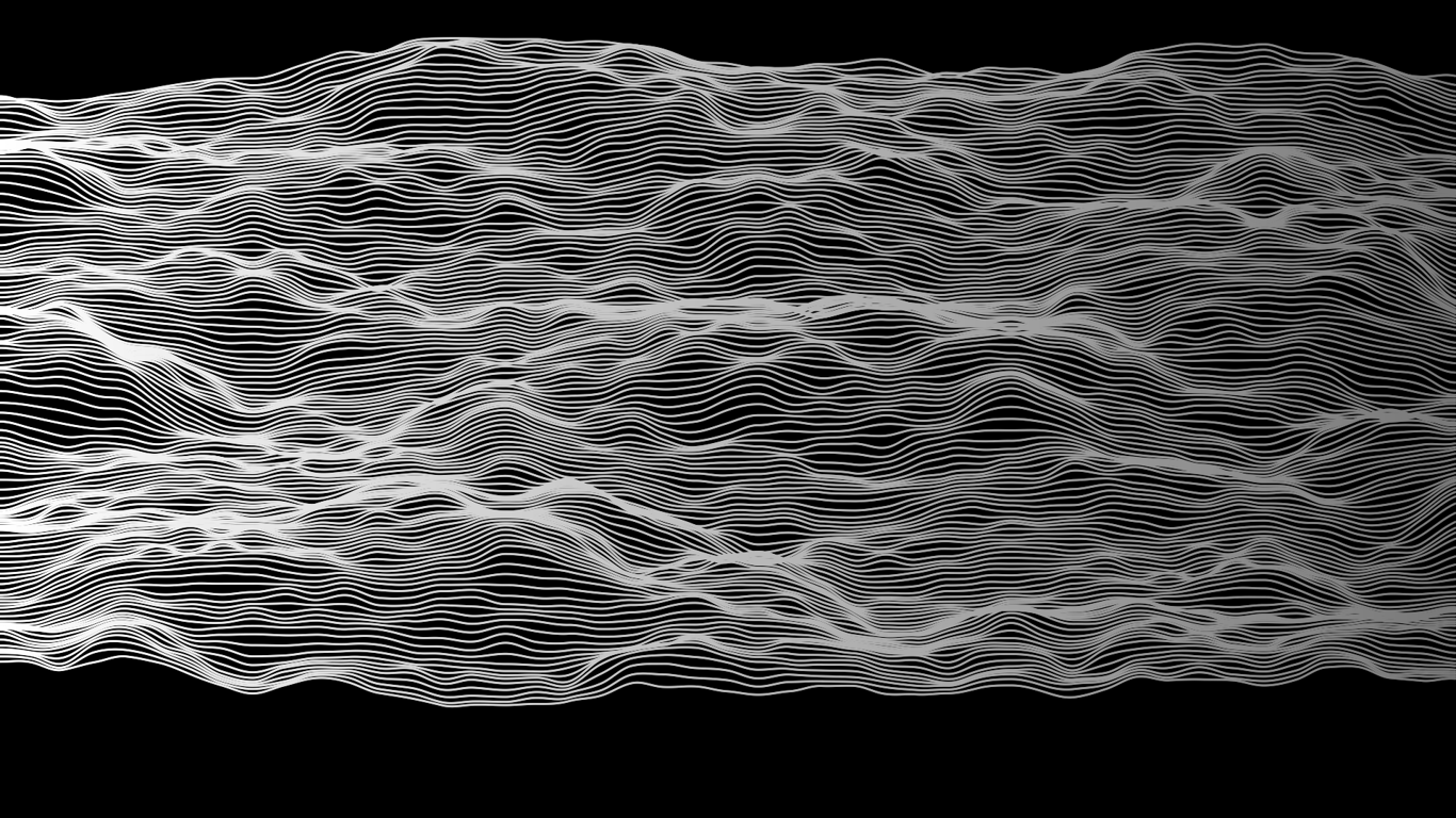 在這件作品設計程式的過程雖然也嘗試了幾種顏色,但最後又決定把數值改回純白色(還是喜歡那種純粹黑白的感覺),看了很久覺得純色特別感受得到線條的變形與間距的變化帶來的流動感,對我而言產生了一種海浪的所謂「聯想」,很有一種動態的平靜感。看久了不知道為什麼會有種被吸進去的感覺。