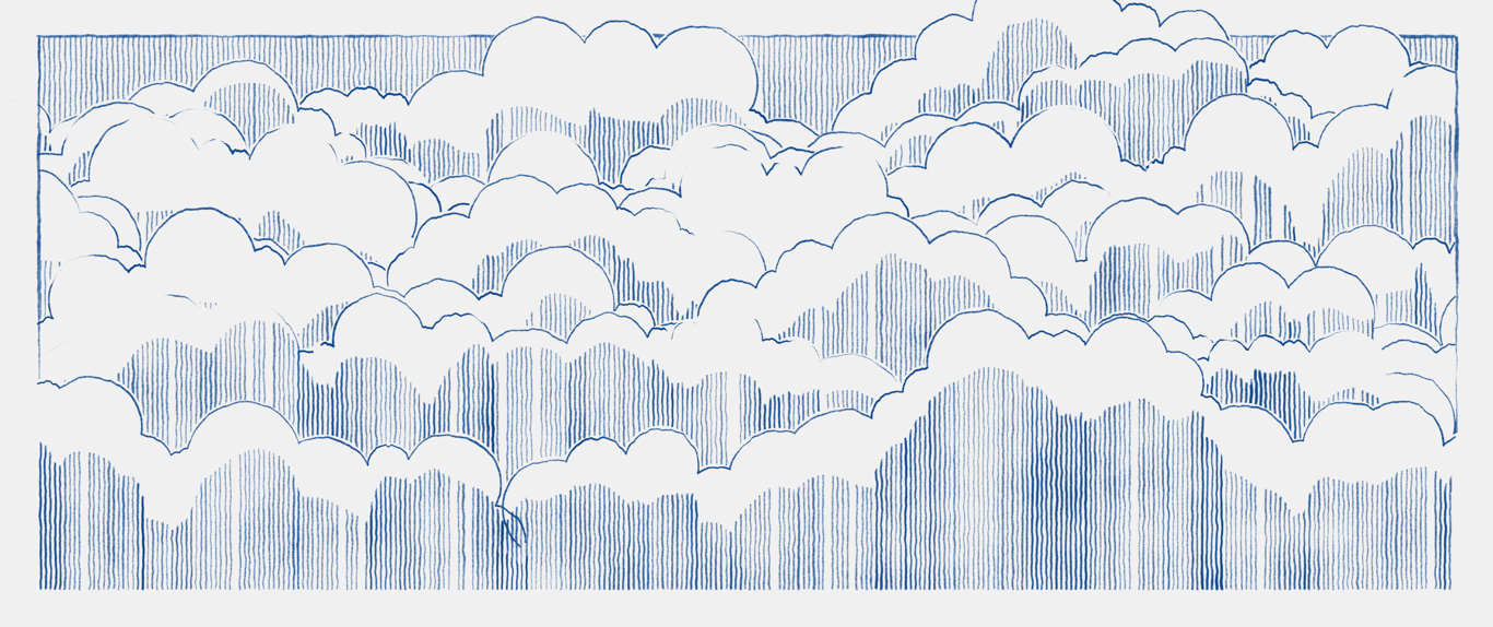 除此之外,在看到黃新(newyellow)老師的作品〈Why is sky so blue〉時讓我又有更多想法。老師的這件作品讓我覺得很有趣的地方在於,這件生成式藝術作品是慢慢「畫」給我看的,它用了很多時間從一個一個圓圈圈,到用白色的色彩直接刷出雲朵的形狀、藍色的筆觸像描著數個圓圈組合而成的邊緣,就像在很正規地在畫著雲朵的一般;接下來,它會用線條畫出雲朵的陰影,一層完成、再接下一層繼續畫下去,要得到完整的圖像,要看著它畫完數層的雲層:這簡直就是一種藝術的體驗,反之,只看圖檔完全難以意會。