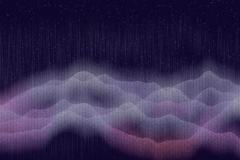 許多生成式藝術家的作品,如 Mido 的〈Moonlit Sea〉、Luluz11 的〈Evanescent Night〉,都是用線條、幾何圖形、顏色變化、噪聲(noise)紋理來製造一種「情境」。像前者用顏色的設定特別營造出一種月光映在夜晚海面上的意境,後者用山巒的顏色漸變和模糊的效果營造出一種夢境般的夜晚的感受。
