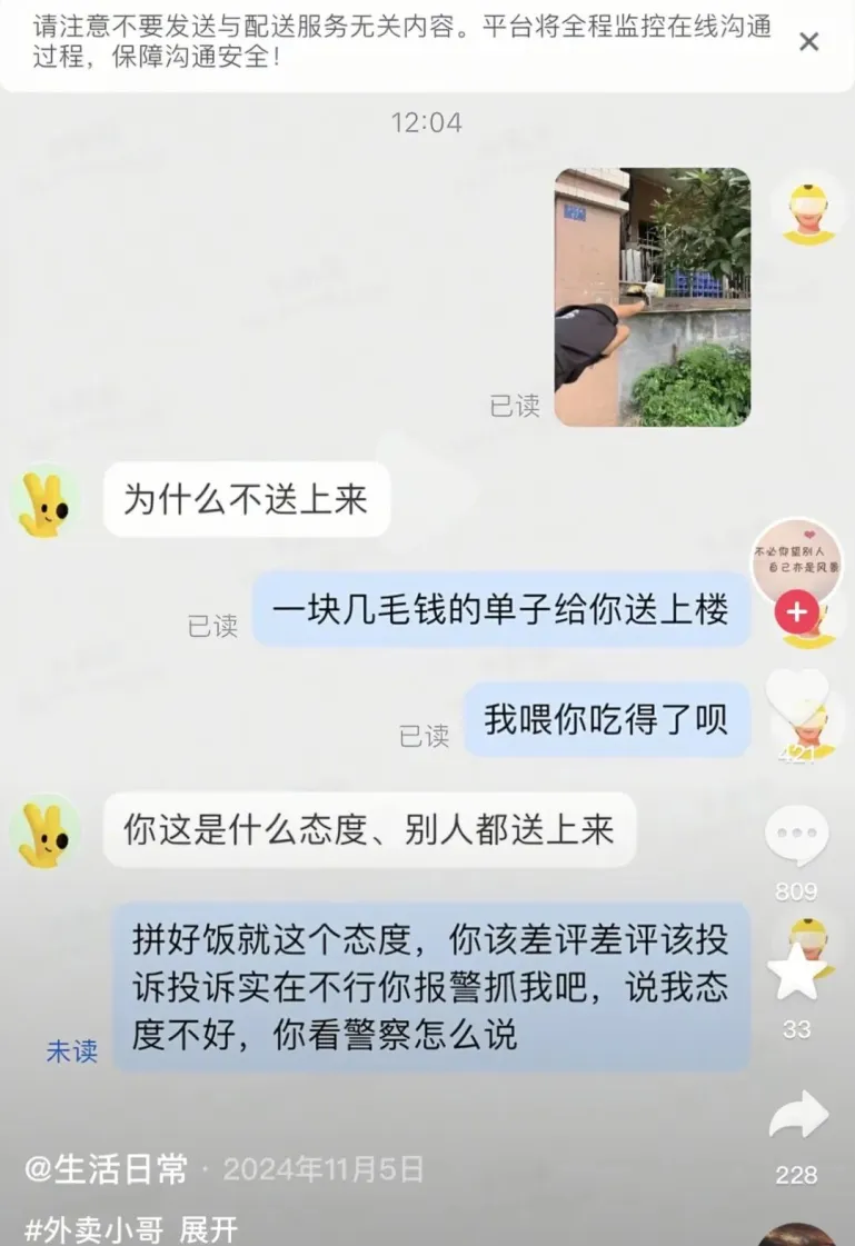 事实上,由于“拼好饭”不止向商家压价,也把外卖员的每单收入又压低了几块钱,导致不少外卖员不愿意把“拼好饭”送上楼,引发矛盾。