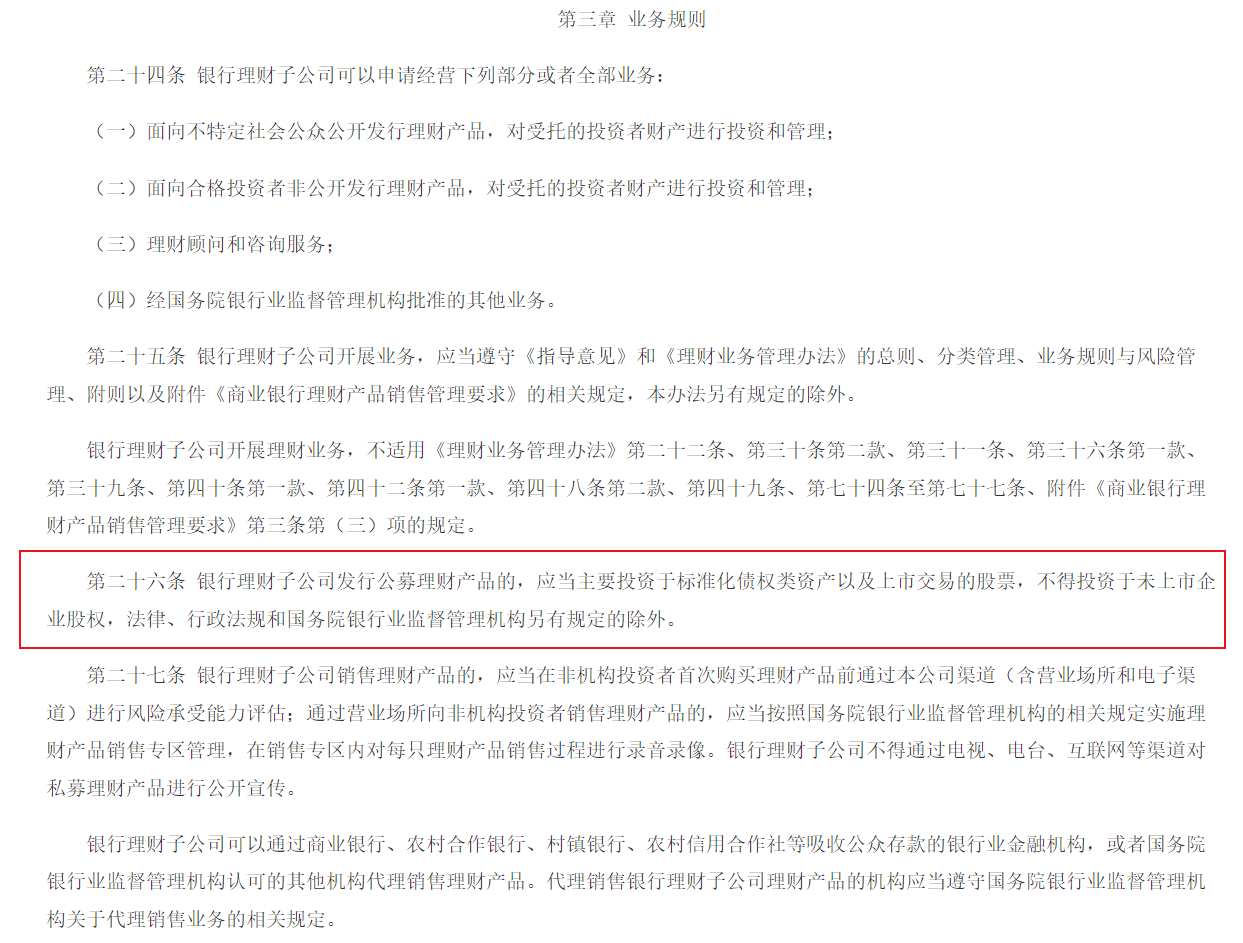 再加上银行理财子公司可以面向不特定社会公众公开发行理财产品,即公募理财产品,而公募理财产品主要投资于标准化债权类资产以及上市交易的股票,不得投资于未上市企业股权。以及银行理财子公司理财产品可以通过营业网点销售,也可以通过官方网站、手机银行APP等电子渠道销售。这不就是换了皮的“公募基金”嘛。