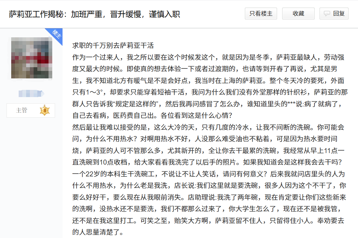 以小笼包的亲身叙述为起点,我们得以窥见萨莉亚“低价高效”背后真实而沉重的劳工现场。而正如文章所揭示,萨莉亚成功的商业模式,本质是一套高度流程化、标准化、压缩人力成本的劳动体系——要求每一位员工无差别地完成预设动作,依靠手册与时间表规范一切。从小笼包必须学会的“单手端三盘”到他在后厨高温下晕厥,再到被迫忍受烫伤后仍需报以“微笑服务”,这些都不是个例,而是这套系统运行的“基本逻辑”。他的兼职工作被排入“严丝合缝”的工时表中,几乎没有喘息空间。虽得到了同事“哥姐”们的照应与善意,但这些温情只是制度缝隙中的人际补丁,无法真正对抗持续性的劳力压榨。萨莉亚之所以能够维持“西餐界蜜雪冰城”的低价奇迹,是因为有千千万万个像小笼包一样的青年劳工,用身体和情绪消化了标准化与降本提效的全部代价。阅读原文