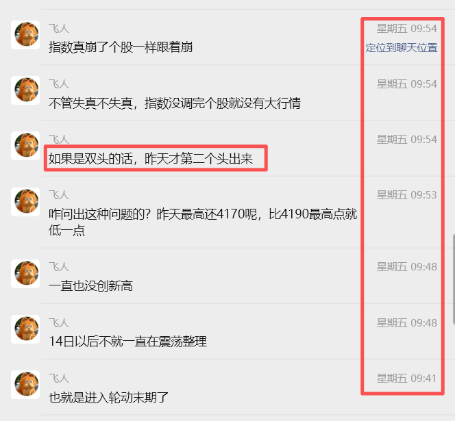 关于大盘双头的形成,我在大盘上周五早盘刚刚开始回踩时就在读者群里预警过: