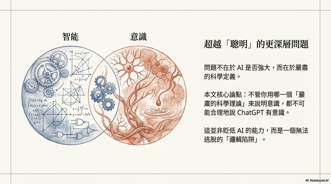 然而,本文要探討的,是一個比「聰明」與否更根本、也更深刻的哲學與科學問題:它是否擁有「意識」?