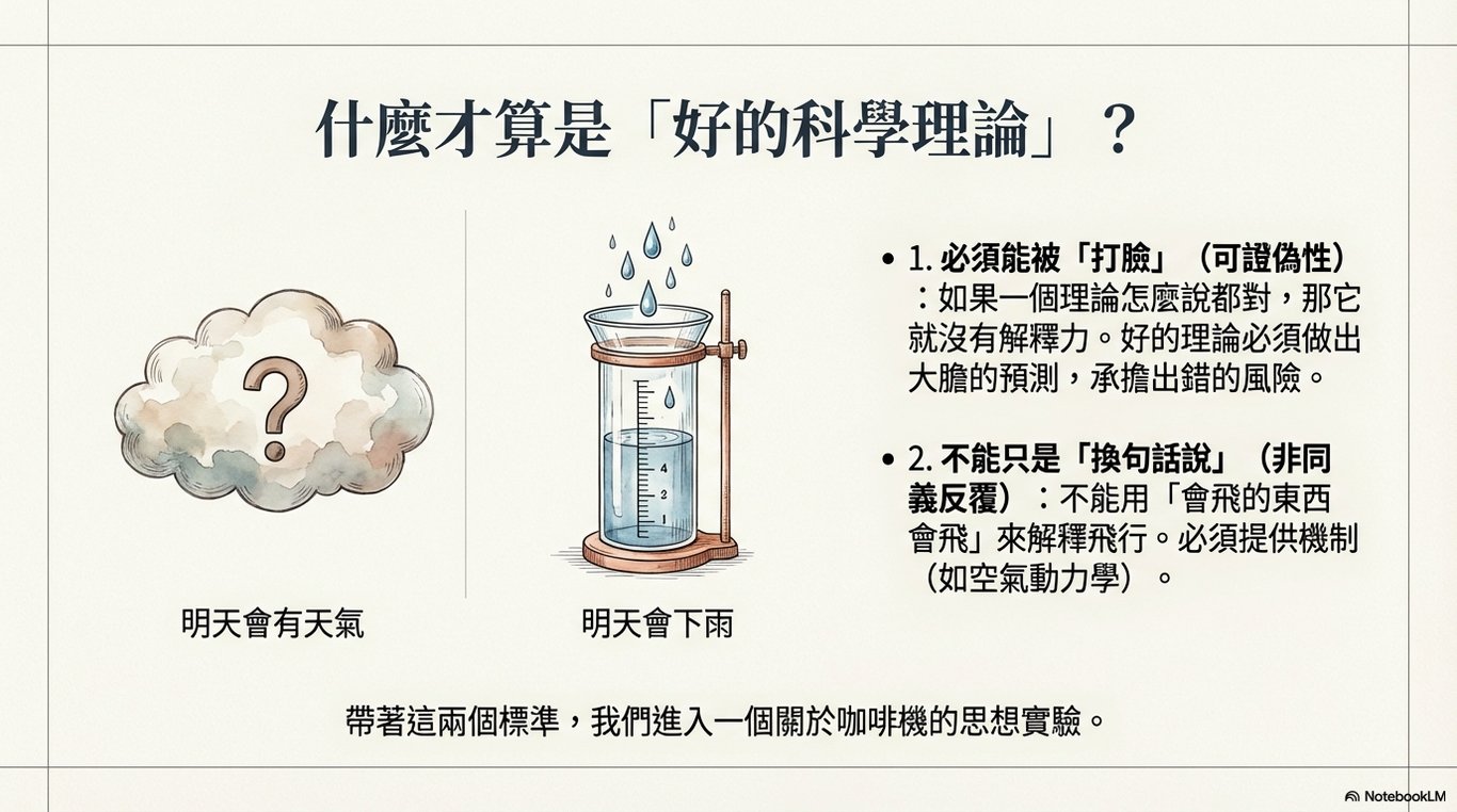 要理解為什麼任何關於 AI 意識的理論都會失效,我們首先需要建立一個共識:什麼才算是一個「好的科學理論」?