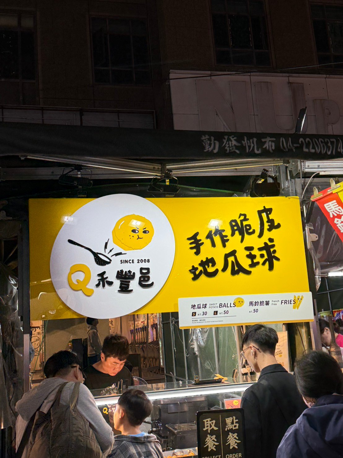 吃了鹹酥雞、地瓜球、買了八耀和茶去飯店喝。