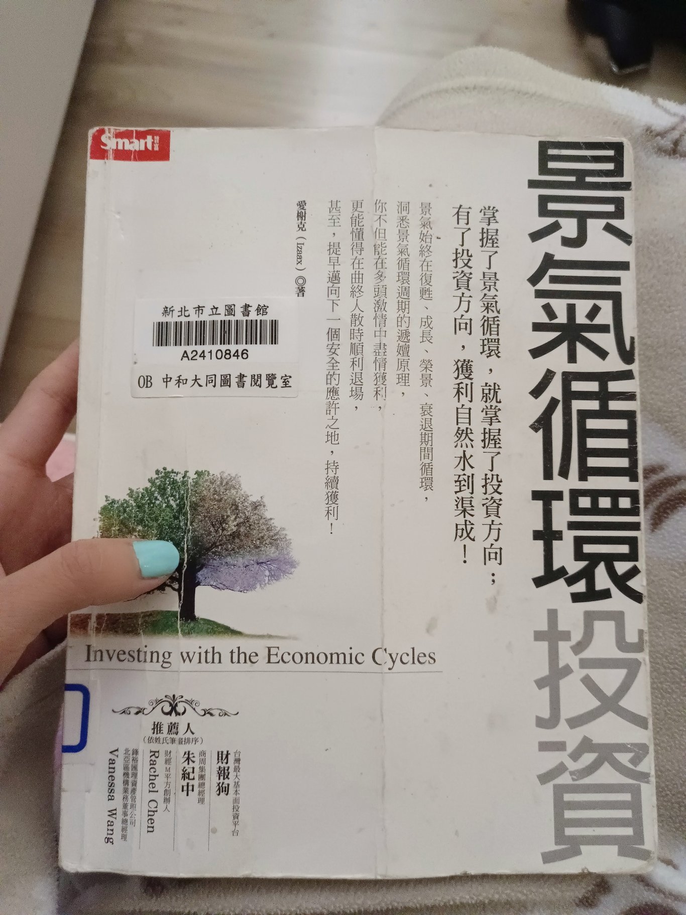 書中不只解釋景氣循環的運作方式,也進一步帶出在不同階段應該採取的投資策略,讓人不再只是被動面對市場波動,而是能多一點判斷依據。對我來說,這本書最大的收穫,是開始理解市場並非隨機起伏,而是有跡可循,當我們能掌握大方向,就更有機會在不確定中做出相對穩健的選擇。