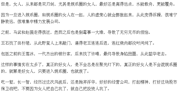 有意思的是我看到了两篇10万+。一篇来自头部级大V黄生《刚刚,刘强东回来了,保卫战正式打响》,分析了半天中心思想是“女人是把双刃剑”。再次强调,这个事情涉嫌性侵,是很严肃的事情。黄生得出的结论却是“远离女人”,好像男人在事件里是受害者或者被动者一般。