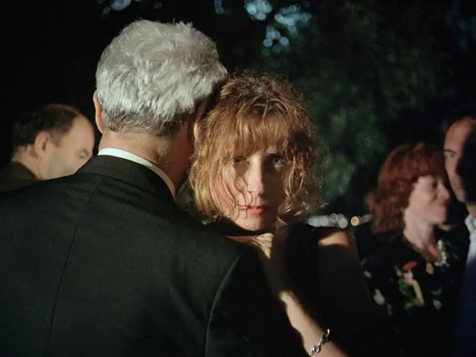 這樣的情景,讓人想到侯麥的電影《秋天的故事》。電影結尾的場景,同樣是一場舞會,在葡萄豐收的季節裏,那是故事中人物Isabelle女兒的婚禮,新人與客人們沉浸在露天晚會歡樂的舞步中,Isabelle與丈夫亦然。那些跟隨著鏡頭經歷完整部電影的觀衆,應該不會對Isabelle在過著一種幸福美滿的人生——這一結論存在太多異議(先不過多透露這裏的劇情),然而黑夜裏的某一瞬,鏡頭聚焦到她的眼睛望向畫外。她的心緒仿佛飄離了這一切,跟生命中某種深邃的幽暗打了個照面。真是一個很巧妙的設置,好像在給導演在這系列電影裏安排反復出現的主題,作了一個最後的標記——那種無與倫比的美麗,恰恰來自巧合、誤會、反復無常,一種由一連串荒謬導致的皆大歡喜。