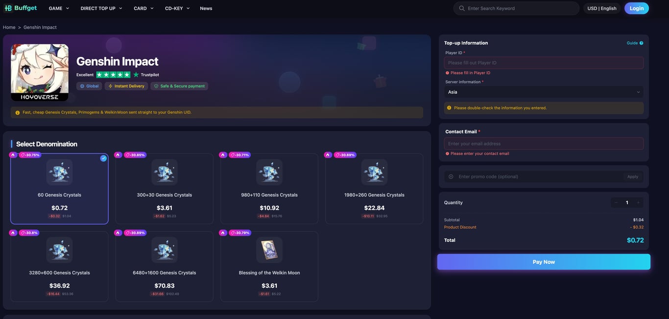 3. Resource Management: Use buffget to buy Genesis Crystals if you need extra pulls—its 20% discount lets you get more wishes without breaking the bank.