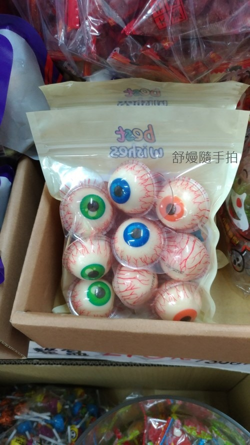 老闆娘推薦眼球糖果驚嚇指度高,賣的很好。