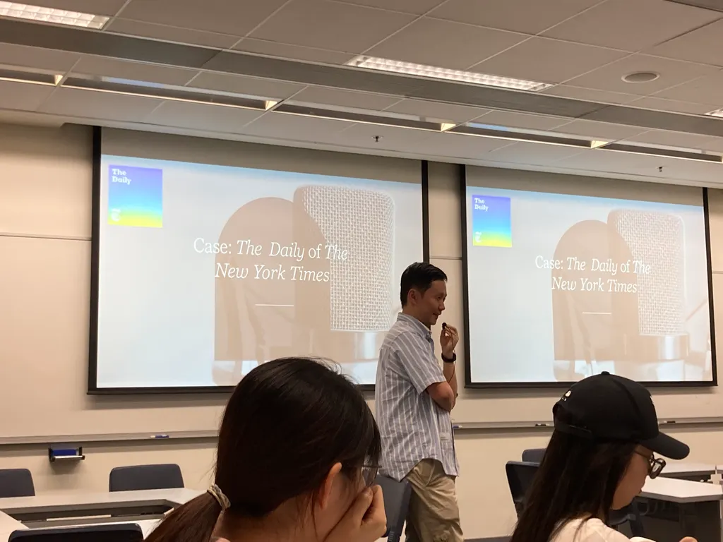 但课堂上的讨论、书单里的理论、对社会文化的拆解,几乎都是我在过去在播客中听过的内容,尤其是我发现自己曾摄入过的播客或公众号,竟成为了课堂的指导材料。我没有感到新奇,像是一种抵达——从耳机走到现场,这条路我走了十年。