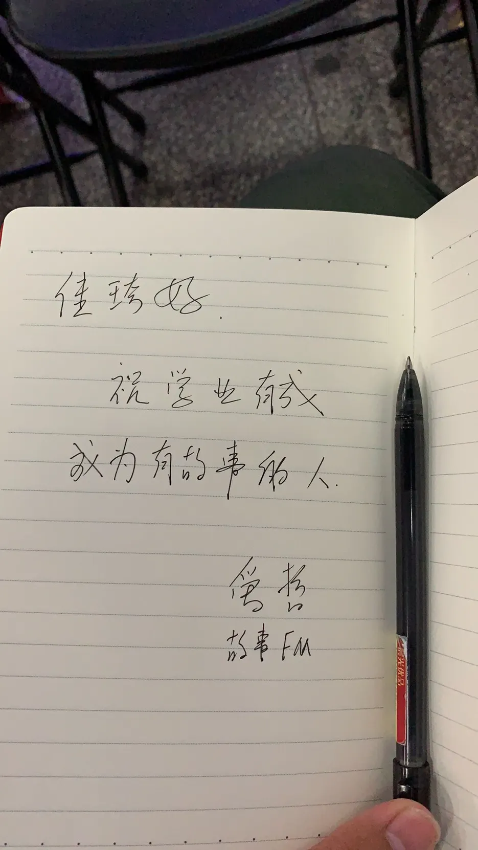 在会场排队时,我远远看到梁文道从门口走来,第一次见到道长让心中忍不住微微激动,却又不敢靠近;走到座位,发现寇爱哲就坐在我前排,原本只是想礼貌地打个招呼,却出乎意料地收到了他的to签;活动间隙,我抓到杨一和他合了影,如今我也成为他的“花园园友”。