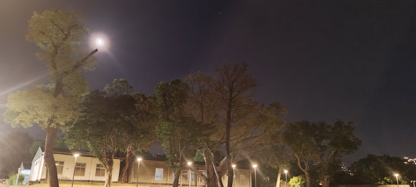 夜空深藍,靜謐如海,城市的喧囂在遠方慢慢退去。樹影在微風中輕輕搖曳,仿佛在與月光低語。遠處的樓宇只是剪影,無聲地守護著這片寧靜。此刻,世界不再急促,只有光與影交織的柔和,讓人想停下腳步,聆聽夜的呼吸。