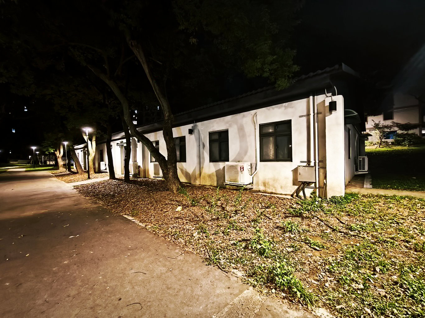 一排白牆在夜色中靜靜佇立,燈光從遠方延伸,像一條緩慢流動的時間線。落葉鋪滿地面,風聲卻不再響起,記憶的殘片,貼在歲月的邊緣。留下了影子,卻帶不走這份沉默。白牆在燈光下泛著微黃的光澤,影子拉得很長,像一段不願結束的故事。