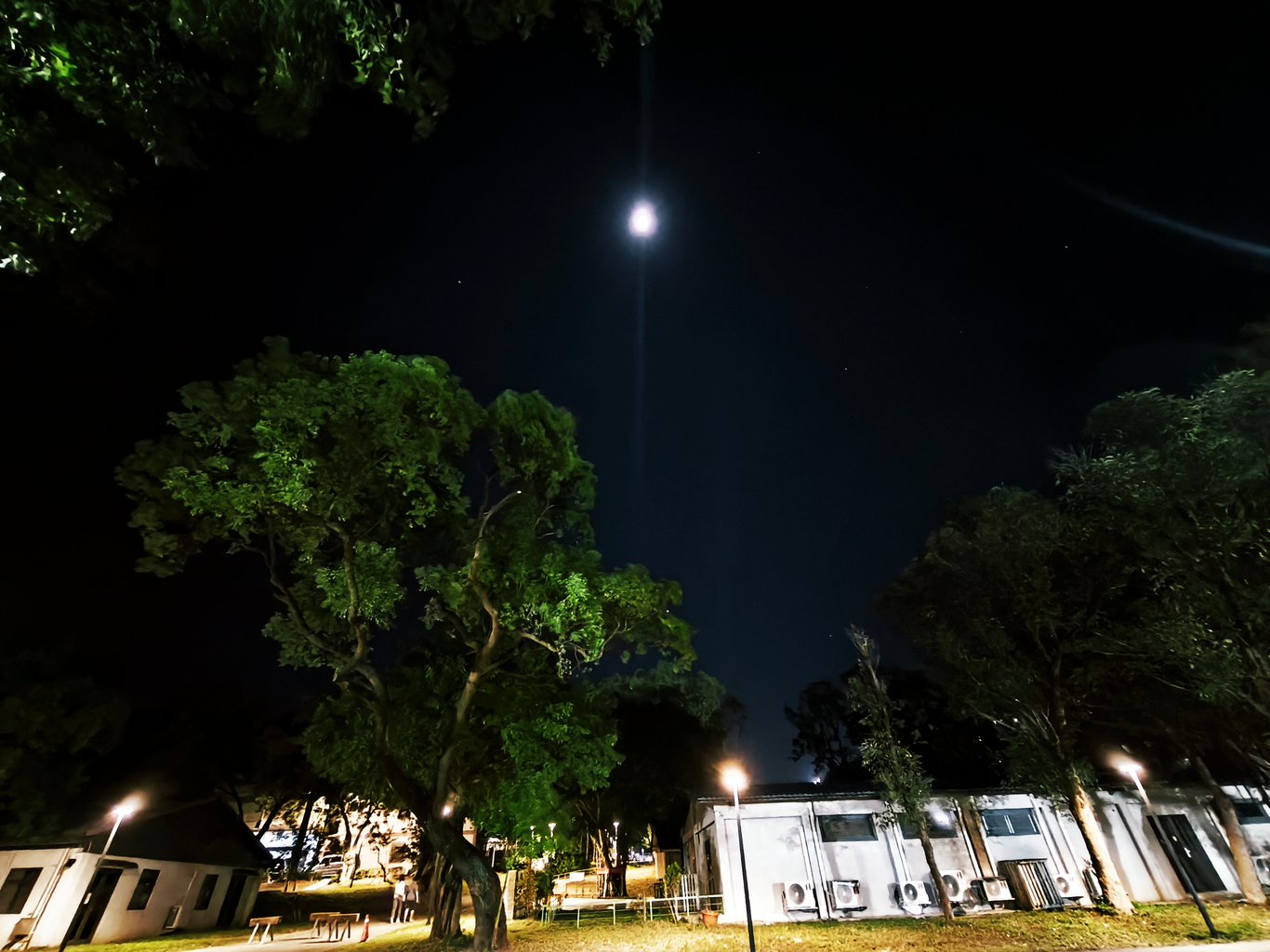 站在草地邊,看著那束光劃破夜空,像一條孤獨的訊號,風輕輕掠過,草地起了微微的波紋,像一個無聲的回應。月亮掛在深藍的夜空,光線像一條細長的路,從天際垂落到眼前的樹影。風沒有回應,樹葉只是輕輕晃動,像在提醒我,答案不在天空,而在我心裡。