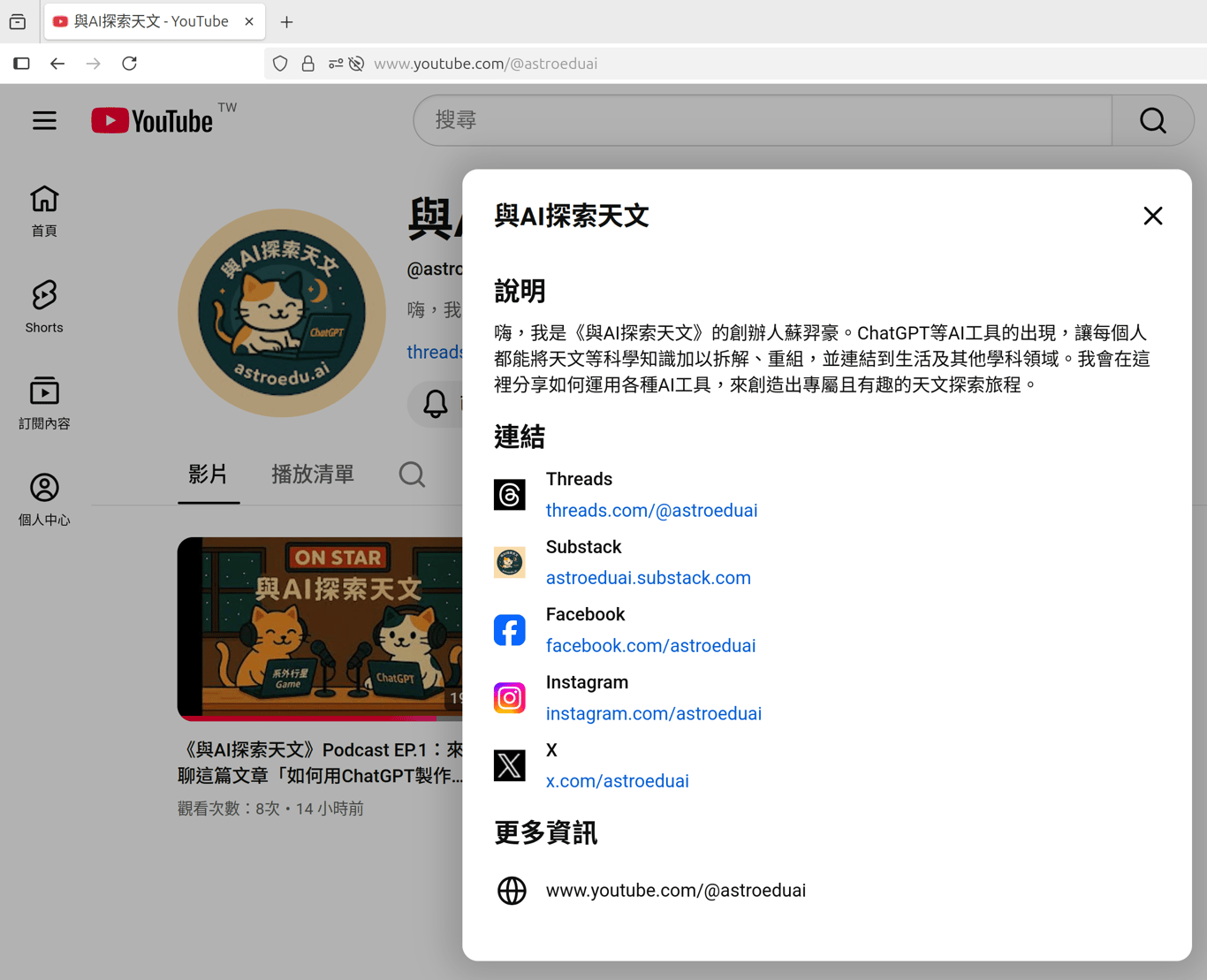 《與AI探索天文》YouTube頻道 www.youtube.com/@ast...